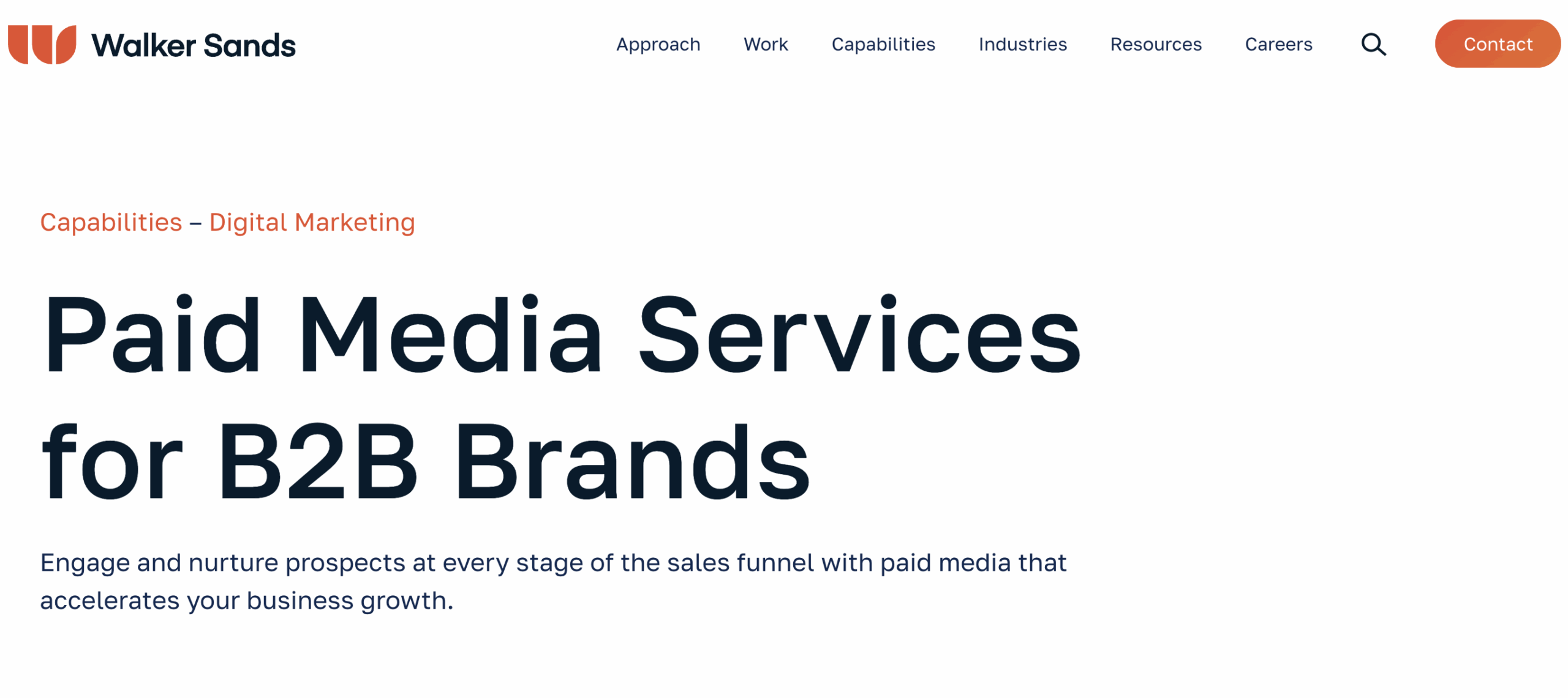 Walker Sands combines paid media with reputation, PR, and content to deliver holistic B2B programs. Their team runs paid social and digital media campaigns across LinkedIn, Facebook, and other platforms as part of full-funnel strategies. They emphasize campaign attribution, audience layering, and ongoing optimization aligned with business outcomes.